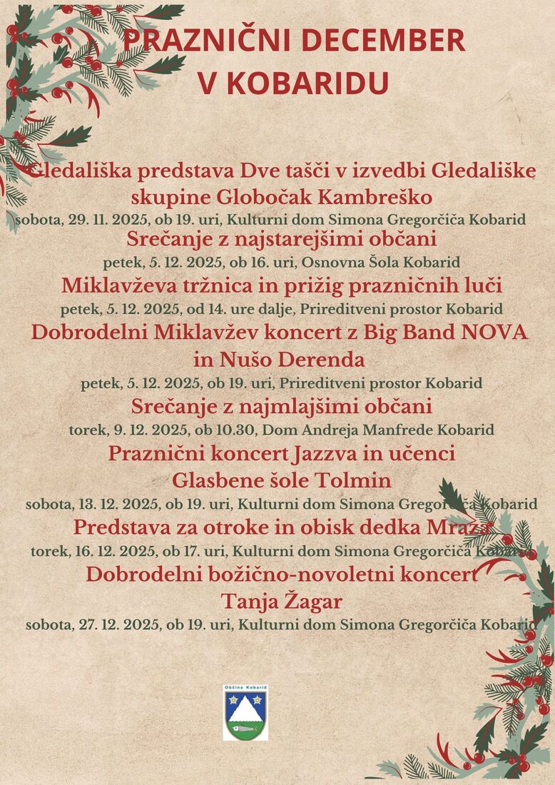 sobota, 13. 12. 2025, ob 19. uri, Kulturni dom Simona Gregorčiča Kobarid