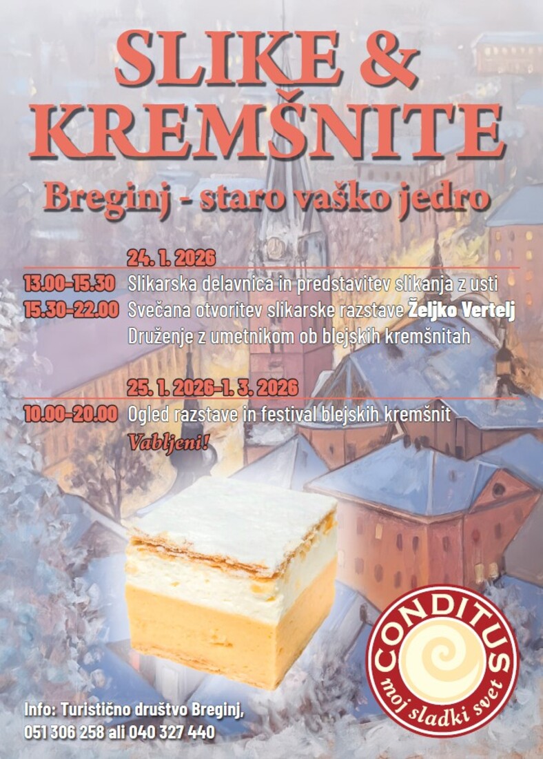 15.30 - 22.00 Svečana otvoritev slikarske raztave Željko Vertelj - druženje z umetnikom ob blejskih kremšnitah