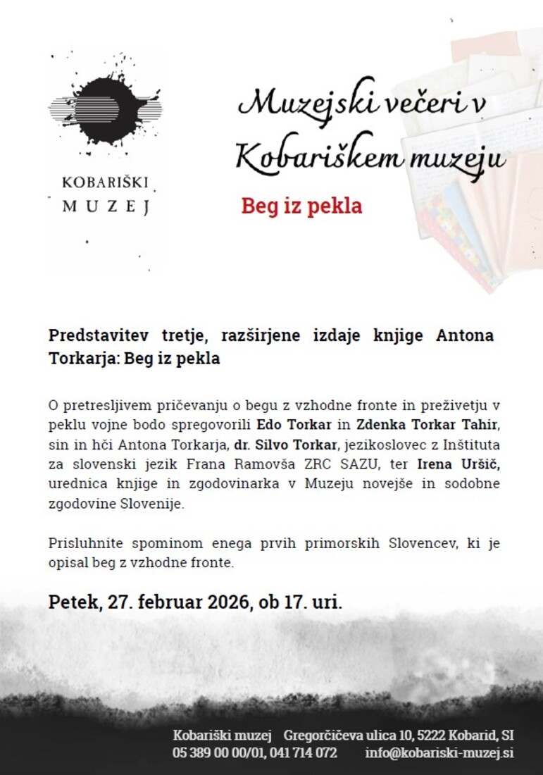Muzej novejše in sodobne zgodovine Slovenije in Tolminski muzej sta v preteklem letu izdala tretjo, razširjeno izdajo pretresljivih spominov Antona Torkarja Beg iz pekla.